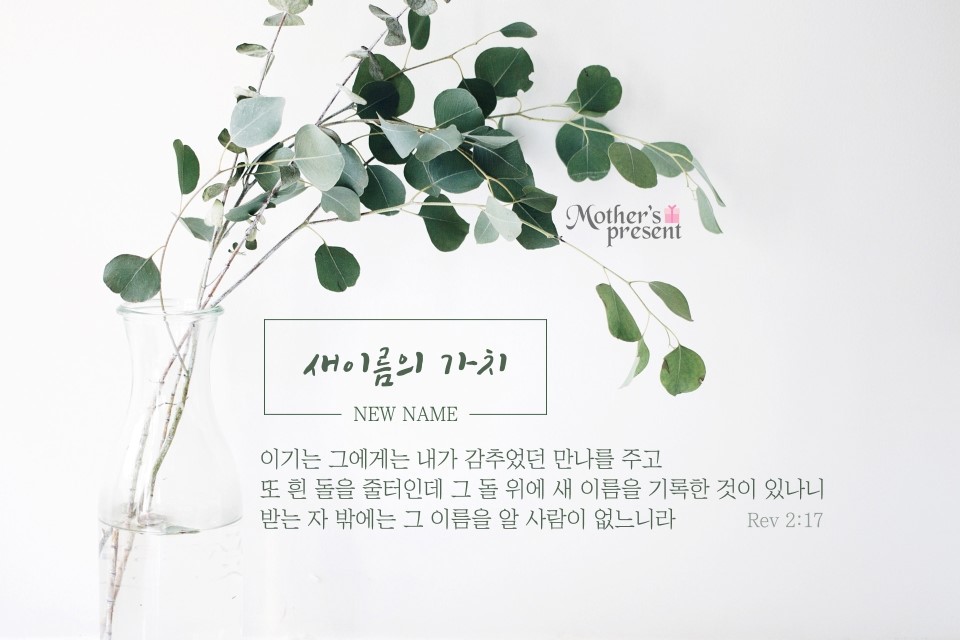 그 돌 위에 새 이름을 기록한 것이 있나니 받는 자 밖에는 그 이름을 알 사람이 없느니라